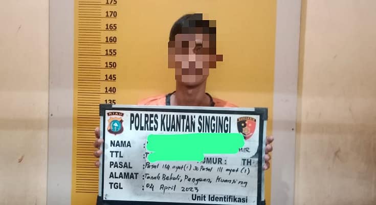 Kapolres Kuansing AKBP Rendra Oktha Dinata melalui Kasat Narkoba Iptu Novris Simanjuntak kepada Media Rabu (05/04/2023) pagi menjelaskan, penangkapan pelaku terduga pengedar narkoba itu berawal dari penelusuran pihak Polisi terhadap pelaku pengedar di wilayah Pangean. Lalu, pada hari selasa tanggal 04 april 2023 sekira pukul 13.00 WIB Tim Opsnal Sat Resnarkoba Polres Kuantan Singingi yang dipimpin langsung oleh kasat Resnarkoba Polres Kuantan Singingi Iptu Novris melakukan penyelidikan di Desa Tanah Bekali Kecamatan Pangean Kabupaten Kuantan Singingi.