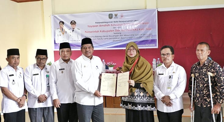 Penandatanganan perjanjian kerjasama itu, dilakukan Bupati Siak Alfedri di saksikan Wakil Bupati Siak Husni Merza dan kepala Dinas Sosial Wan Idris. Bupati Siak Alfedri mengucapkan syukur atas penandatanganan MoU yang dilaksanakan antara Yayasan Amaliah Keluarga Sakinah Indonesia, dengan pemerintah kabupaten Siak dan Baznas kabupaten Siak untuk penderita disabilitas di kabupaten Siak.