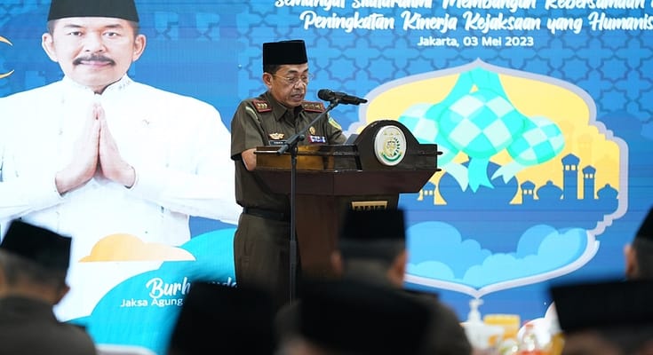 Jakarta | riauindependen.co.id | Wakil Jaksa Agung Dr. Sunarta membacakan sambutan Jaksa Agung pada Acara Halal Bihalal Idul Fitri 1444 H, yang dihadiri oleh Para Jaksa Agung Muda, Kepala Badan Pendidikan dan Pelatihan Kejaksaan RI, Para Staf Ahli Jaksa Agung, Para Pejabat Eselon II di lingkungan Kejaksaan Agung, Ketua Umum Ikatan Adhyaksa Dharmakarini beserta jajaran, serta ulama Miftah Maulana Habiburrahman, S.Pd (Gus Miftah), bertempat di Gedung Utama Kejaksaan Agung, Rabu (3/5/2023).
