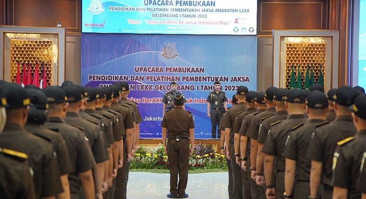 Jakarta | riauindependen.co.id | Wakil Jaksa Agung Dr. Sunarta mewakili Jaksa Agung ST Burhanuddin membacakan amanat Jaksa Agung dalam Pembukaan Pendidikan dan Pelatihan Pembentukan Jaksa (PPPJ) Angkatan LXXX (80) Gelombang I Tahun 2023 dengan tema “Jaksa BerAKHLAK untuk Indonesia Maju”, Selasa (9/5/2023).