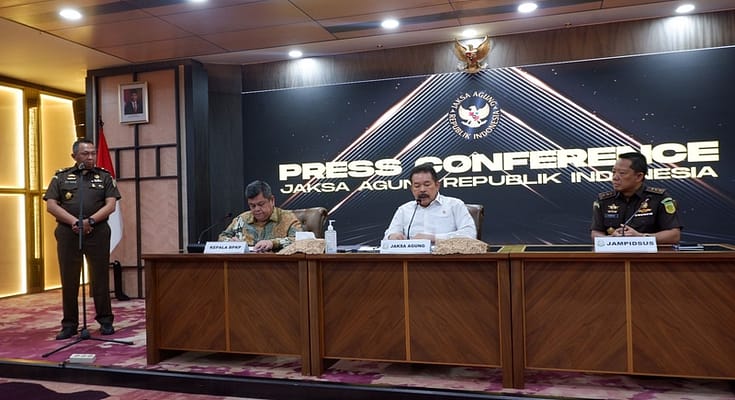 Jakarta | riauindependen.co.id | Jaksa Agung ST Burhanuddin, Kepala Badan Pengawasan Keuangan dan Pembangunan (BPKP) Muhammad Yusuf Ateh, dan Jaksa Agung Muda Tindak Pidana Khusus (JAM-Pidsus) Febrie Adriansyah menghadiri konferensi pers mengenai perkembangan penanganan perkara tindak pidana korupsi, bertempat di Gedung Utama Kejaksaan Agung, (15/5/2023).