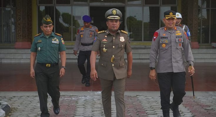 Pelalawan | riauindependen.co.id | Bupati Pelalawan H. Zukri bertindak langsung sebagai Inspektur upacara pada Peringatan Hari Ulang Tahun (HUT) Satpol PP ke-73, Satlinmas ke-61 dan Damkar ke-104 Tingkat Kabupaten Pelalawan Tahun 2023 di halaman Kantor Bupati Pelalawan, Senin (19/6/2023).