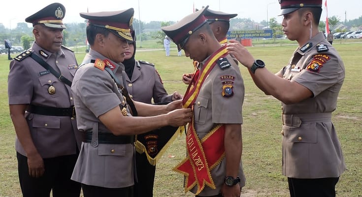 Pekanbaru | riauindependen.co.id | Wakapolda Riau Brigjen Pol Kasihan Rahmadi melantik 134 Bintara Polri Gelombang I tahun angkatan 2023 dalam Apel Penutupan yang di gelar di Sekolah Polisi Negara (SPN) Polda Riau Jalan lintas Pekanbaru Bangkinang, Kamis (6/7/2023).
