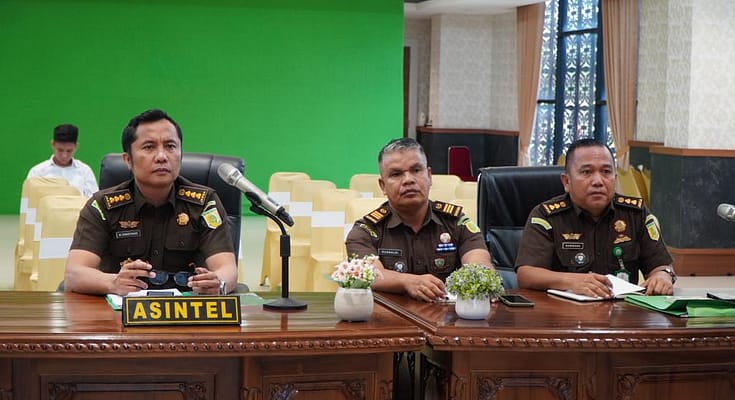 Pekanbaru | riauindependen.co.id | Asisten Intelijen Kejaksaan Tinggi Riau Marcos M.M. Simaremare, S.H., M.Hum didampingi Kasi Penerangan Hukum bidang Intelijen Kejaksaan Tinggi Riau Bambang Heripurwanto, SH., MH dan Fungsional Humas bidang Intelijen Kejaksaan Tinggi Riau Rusnaldi, SH mengikuti kegiatan Sosialisasi Monitoring, dan Evaluasi Keterbukaan Informasi Publik Tahun 2023 dalam rangka Peningkatan Pelayanan Informasi Publik secara virtual, bertempat di ruang Vicon Lt. 2 Gedung Satya Adhi Wicaksana Kejaksaan Tinggi Riau, Selasa (11/7/2023).