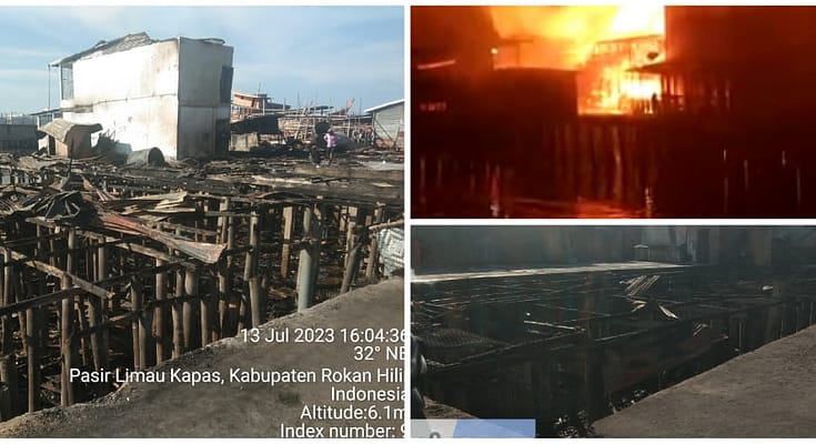 Kebakaran hebat di Jalan Karya RT 01 RW 02 Dusun 01 Methodist Kepenghuluan Teluk Pulai Kabupaten Rohil itu terjadi pada Kamis tanggal 13 Juli 2023 sekitar pukul 00.30 Wib.