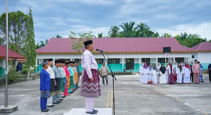 Selesai memimpin apel pagi Bupati Siak Alfedri menyerahkan kia, ktp, serta kk kepada beberapa anak ,selain itu juga menyerahkan bibit untuk ditanam.*(t/ INF)