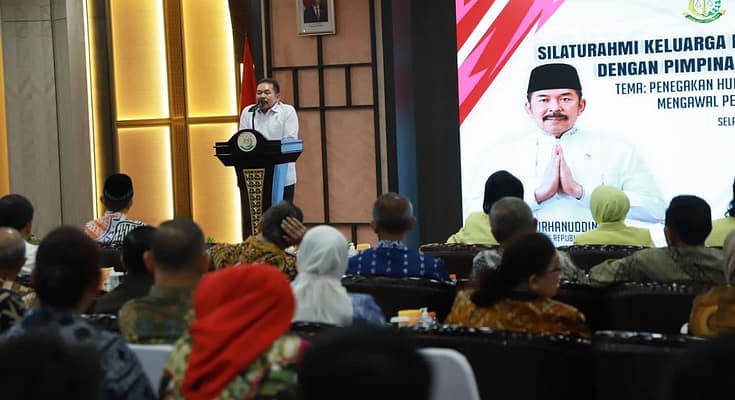 Jakarta | riauindependen.co.id | Jaksa Agung ST Burhanuddin memberikan sambutan dalam Acara Silaturahmi Keluarga Besar Purna Adhyaksa (KBPA), bertempat di Gedung Utama Kejaksaan Agung, Selasa (18/7/2023).