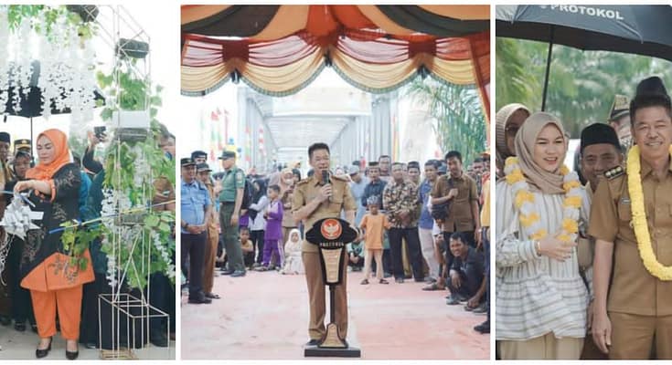 Rohil | Riauindependen.co.id | Bupati Rokan Hilir (Rohil), Afrizal Sintong Sip meresmikan pembangunan jembatan penyebarangan Kepenghuluan Air Hitam, Kecamatan Pujud, Selasa (18/7/2023).