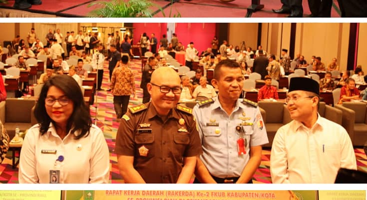 Pekanbaru | riauindependen.co.id | Kepala Kejaksaan Tinggi Riau Dr. Supardi yang dalam hal ini diwakili oleh Koordinator pada Bidang Intelijen Kejaksaan Tinggi Riau Agus Taufikurrahman, S.H., M.H menghadiri kegiatan Rapat Kerja Daerah ke- 2 Forum Kerukunan Umat Beragama (FKUB) Se-Provinsi Riau Tahun 2023 dengan Tema “Membangun Kebersamaan dan Kerukunan Dalam Menghadapi Pemilu/Pemilukada Tahun 2024″. Bertempat di The Zuri Hotel, Kota Pekanbaru, Provinsi Riau, Senin (24/7/2023).