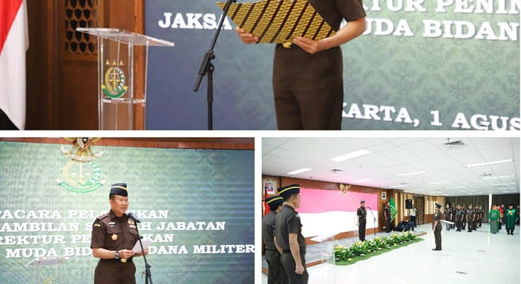 Jakarta | riauindependen.co.id | Jaksa Agung Muda Pidana Militer (JAM-Pidmil) Dr. Wahyoedho Indrajit memberikan amanat pada Acara Pelantikan, Pengambilan Sumpah, dan Serah Terima jabatan eselon II, III dan IV di lingkungan Jaksa Agung Muda Bidang Pidana Militer (JAMPIDMIL), bertempat di Lantai 10 Gedung Menara Kartika, Selasa (1/8/2023).