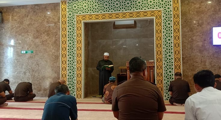 Kegiatan Tausiyah Dzuhur di Masjid Al-Mizan Kejaksaan Tinggi Riau mengikuti secara ketat protokol kesehatan.**(r)