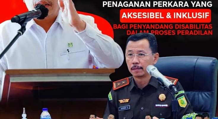 Pekanbaru | riauindependen.co.id | Kepala Kejaksaan Tinggi Riau Dr. Supardi mengikuti kegiatan Peluncuran dan Diseminasi Pedoman Nomor 2 Tahun 2023 Tentang Akomodasi yang Layak dan Penanganan Perkara yang Aksesibel dan Inklusif bagi Penyandang Disabilitas dalam Proses Peradilan dibuka oleh Jaksa Agung Muda Tindak Pidana Umum Kejaksaan Agung RI Dr. Fadil Zumhana secara virtual, bertempat di Ruang Vicon Lt. 2 Gedung Satya Adhi Wicaksana Kejaksaan Tinggi Riau, Kamis (3/8/2023).