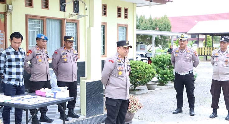 SIAK | riauindependen.co.id | Kapala Kepolisian Resor (Kapolres) Siak AKBP Asep Sujarwadi, S.I.K., M.Si didampingi Propam Polres Siak melakukan sidak di dua polsek jajarannya untuk tes narkoba mendadak, Kamis (10/8/2023).