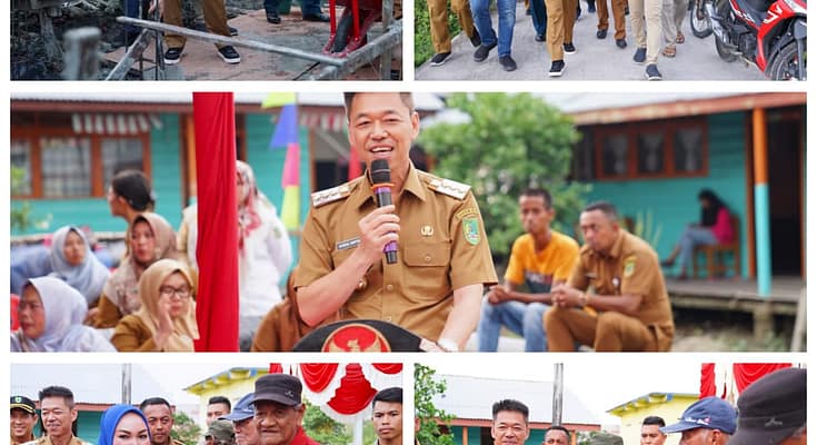 Sinaboi | Riauindependen.co.id | Bupati Rokan Hilir (Rohil) Afrizal Sintong melakukan peletakan batu pertama untuk melaksanakan pembangunan gedung belajar SDN 001 dan SMPN 003 di Kelurahan Sinaboi Kota Kecamatan Sinaboi, Senin (18/9/2023).