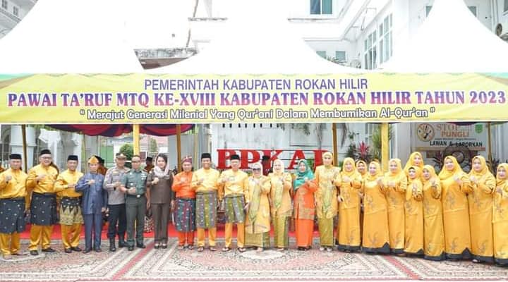 Rohil | Riauindependen.co.id | Bupati Rokan Hilir (Rohil) Afrizal Sintong Epi Sintong SIP, M.Si didampingi Wakil Bupati H Sulaiman Azhar SS MH bersama Forkopimda melepas ribuan peserta pawai ta’aruf MTQ ke XVIII tingkat Kabupaten Rohil yang dipusatkan di depan kantor BPKAD, Jalan Merdeka, Bagansiapiapi, Minggu (17/12/2023).