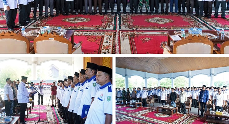 Siak | riauindepende.co.id | Bupati Siak Alfedri bacakan naskah pengukuhan Pengurus 14 Forum Pembauran Kebangsaan (FPK) Kecamatan Se Kabupaten Siak Periode 2024-2029 dan juga berkomitmen melalui deklarasi Pemilihan Umum (Pemilu) dan Pemilihan Kepala Daerah (Pilkada) Damai Tahun 2024, di balai room datuk empat suku komplek abdi praja, rabu (31/01/2024).
