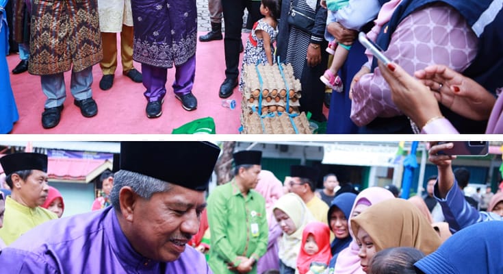 Komitmen tersebut di tunjukan Bupati Alfedri saat program bujang kampung ke 100 menyerahkan bantuan makanan kepada anak-anak di Kecamatan Tualang.