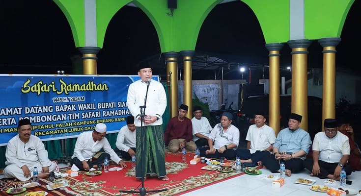 Sementara tim safari Ramadan ke dua dipimpin Wakil Bupati Siak Husni Merza titik acara di Masjid Miftahul Falah kampung Empang Baru, Dusun Sido Mulyo Blok B Lubuk Dalam.
