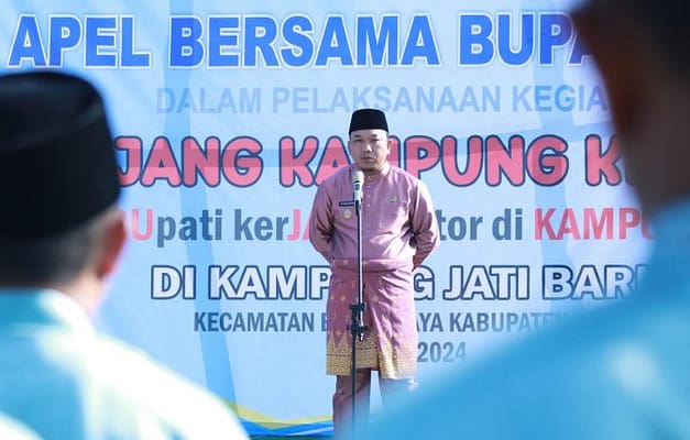 Siak | Riauindependen.co.id | Pemerintah Kabupaten Siak dalam hal ini di wakili oleh Wakil Bupati Husni Merza menjadi pembina apel pagi bersama dalam program andalannya Bujang Kampung (Bupati Ngantor dan Bekerja di Kampung), sudah ke 108 di halaman kantor penghulu kampung Jati Baru Kecamatan Bungaraya, Jumat (5/7/2024).