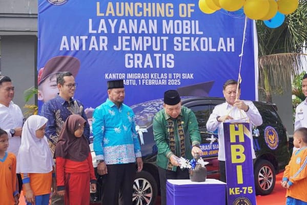 “Atas nama Pemerintah Kabupaten Siak, kami mengapresiasi inovasi luar biasa dari Kantor Imigrasi Siak yang telah menyediakan layanan mobil antar jemput sekolah gratis bagi anak kurang mampu,” kata dia, di Kantor Imigrasi Kelas II TPI Siak, Komplek Perkantoran Tanjung Agung, Kecamatan Mempura, Sabtu (1/2/2025).
