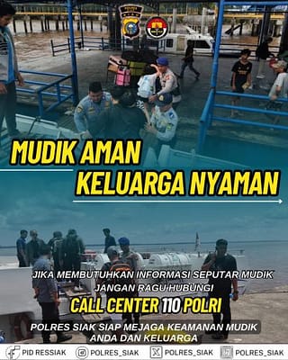 Dalam beberapa hari terakhir, akun media sosial resmi Polres Siak aktif mengunggah konten edukatif mengenai cara mengakses Call Center Mudik Polri 110, yang dapat digunakan dalam situasi darurat, serta memberikan berbagai tips keselamatan bagi pemudik agar perjalanan Lebaran berlangsung dengan aman dan nyaman. Kampanye ini bertujuan untuk memberikan rasa aman kepada masyarakat, baik yang sedang dalam perjalanan mudik maupun yang merayakan Lebaran di rumah.