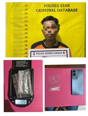 Kerinci Kanan | Riauindependen.co.id | Kepolisian Sektor (Polsek) Kerinci Kanan berhasil mengungkap kasus peredaran narkotika jenis shabu seberat 1,26 gram pada Senin malam, 17 Maret 2025. Penangkapan dilakukan di sekitar Kantor Camat Kerinci Kanan, Kecamatan Kerinci Kanan, Kabupaten Siak, setelah aparat kepolisian menerima laporan dari masyarakat terkait aktivitas transaksi narkotika di lokasi tersebut.