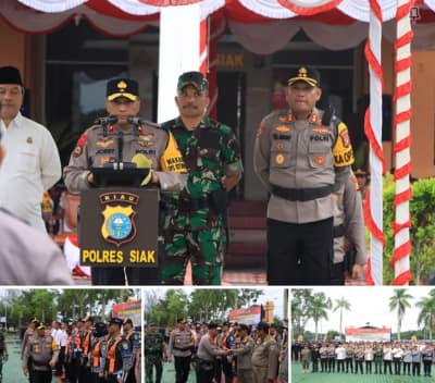 Apel ini turut dihadiri oleh sejumlah pejabat penting, antara lain Dir Samapta Polda Riau Kombes Pol Raswin Bachtiar Sirait, S.H., S.I.K., M.Si., Wadir Intelkam Polda Riau AKBP Pangucap Priyo Soegito, S.I.K., M.H., Penata Kebijakan Kapolri Madya Tingkat 3 Polda Riau, Danyon A Pelopor Sat Brimob Polda Riau AKBP Efadhoni Lilik Pamungkas, S.H., S.I.K., M.Tr.Mil., Kapolres Siak AKBP Eka Ariandy Putra, S.H., S.I.K., M.Si., serta perwakilan dari TNI, pemerintah daerah, DPRD Kabupaten Siak, Satpol PP, Dinas Perhubungan, Dinas Kependudukan dan Pencatatan Sipil, BPBD, dan berbagai instansi terkait lainnya.