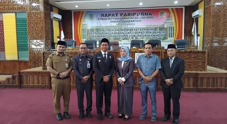 Rohil | Riauindependen.co.id | Pemerintah Kabupatenn Rokan Hilir (Rohil) secara resmi menyampaikan Laporan Keterangan Pertanggungjawaban (LKPJ) Tahun Anggaran 2024 dalam rapat paripurna DPRD yang digelar di Gedung DPRD Rohil, Bagansiapiapi, Senin (14/04/2025).