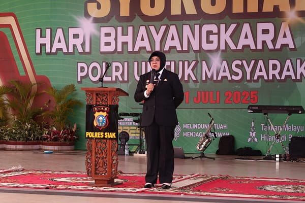 “Ini momen istimewa bagi saya, karena pertama kalinya hadir sebagai Bupati Siak dalam perayaan Hari Bhayangkara. Kami sampaikan tahniah dan penghargaan setinggi-tingginya kepada Polri,” ujarnya.