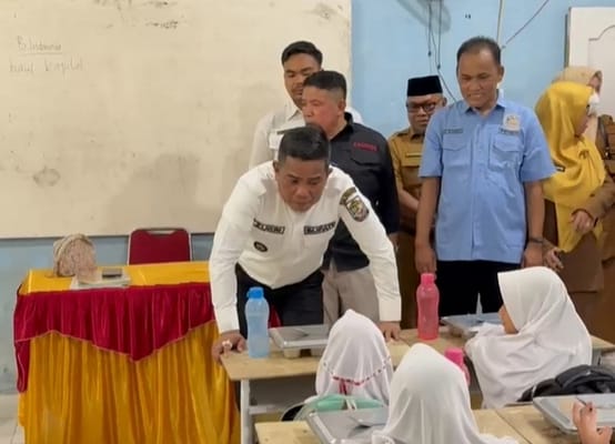 Pangkalan Kerinci, Pelalawan | Riauindependen.co.id | Pemerintah Kabupaten Pelalawan resmi memulai pelaksanaan Program Makan Bergizi Gratis (MBG) pada hari Selasa, 22 Juli 2025, bertempat di Sekolah Dasar Negeri (SDN) 005, Desa Makmur, Kecamatan Pangkalan Kerinci. Peluncuran hari pertama ini ditinjau langsung oleh Bupati Pelalawan, H. Zukri.