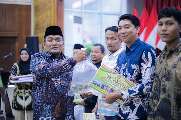 DUMAI | Riauindependen.co.id | Pemerintah Kota Dumai melalui Dinas Perikanan menyalurkan bantuan hibah berupa sarana dan prasarana perikanan bagi kelompok pembudidaya ikan dan nelayan kecil. Penyerahan bantuan ini dilakukan oleh Wakil Wali Kota Dumai, Sugiyarto, di Gedung Sri Bunga Tanjung, Kamis (28/08/2025).