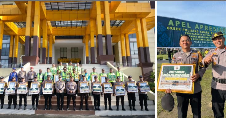 Penghargaan itu diserahkan langsung oleh Kapolda Riau dalam kegiatan Apel Apresiasi Green Policing Award Bhabinkamtibmas Polda Riau, Pelatihan dan Penghargaan Satkamling Terbaik, serta Penyerahan Sertifikat Public Speaking Green Policing Polda Riau Tahun 2025, yang digelar di halaman Mapolda Riau, Rabu (8/10/2025).