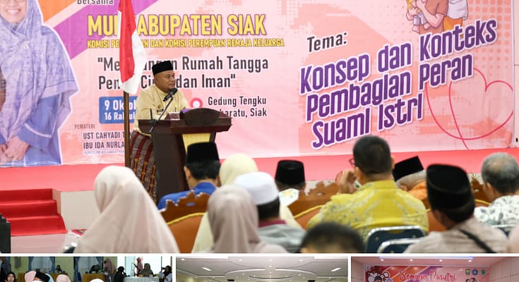 Siak | Riauindependen.co.id | Majelis Ulama Indonesia (MUI) Kabupaten Siak melalui Komisi Pendidikan serta Komisi Perempuan, Remaja dan Keluarga menggelar Seminar Pasangan Suami Istri (Pasutri) bertema “Membangun Rumah Tangga Penuh Cinta dan Iman: Konsep dan Konteks Pembagian Peran Suami dan Istri” di Gedung Tengku Mahratu, Siak, Kamis (9/10/2025).