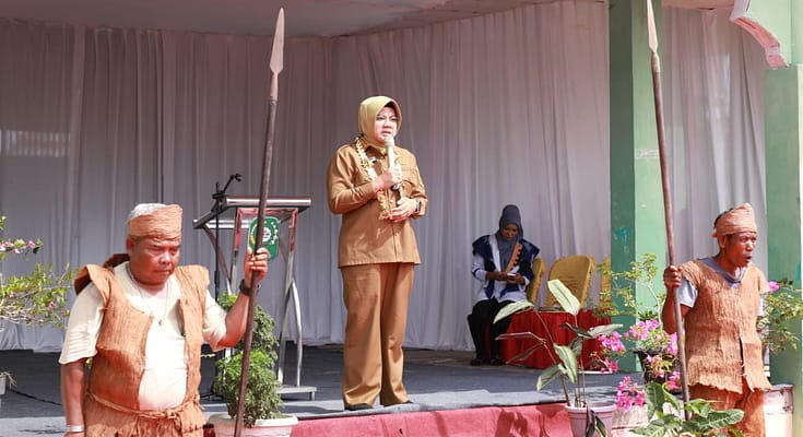 Kandis, Siak | Riauindependen.co.id | Bupati Siak, Afni Zulkifli, menghadiri pelantikan dan pengukuhan Pengurus Gabungan Sakai Kandis (GASAK-Riau) periode 2025–2030 di Lapangan Kantor Camat Lama, Kecamatan Kandis, Senin (13/10/2025).