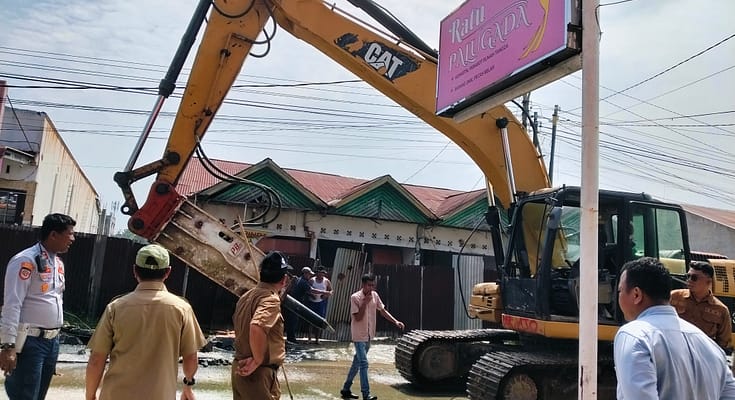 Pelalawan | Riauindependen.co.id | Pemerintah Kabupaten Pelalawan menurunkan alat berat untuk membersihkan dan menormalisasi drainase di Jalan Pemda, Pangkalan Kerinci, Senin (3/11/2025). Peninjauan langsung dilakukan oleh Asisten II Setda Pelalawan, Drs. Fakhrizal.