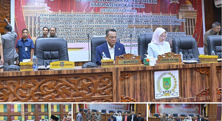 Rohil | Riauindependen.co.id | DPRD Rokan Hilir bersama Pemerintah Kabupaten Rohil resmi mengesahkan Ranperda Anggaran Pendapatan dan Belanja Daerah (APBD) Tahun Anggaran 2026 melalui rapat paripurna pada Ahad, 30 November 2025.