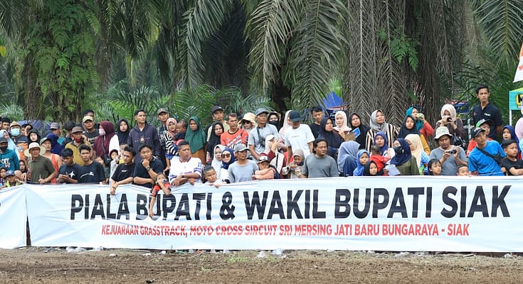 Bungaraya, Siak | Riauindependen.co.id | Bupati Siak Afni resmi membuka Kejuaraan Grasstrack Piala Bupati dan Wakil Bupati Siak 2025 di Sirkuit Sri Mersing, Kampung Jati Baru, Kecamatan Bungaraya, Minggu (30/11/2025). Kegiatan ini diikuti 304 pembalap dari berbagai kabupaten di Riau serta dari luar provinsi, seperti Jawa Barat dan Aceh.