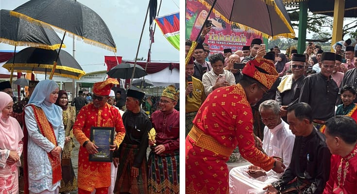 Pelalawan | Riauindependen.co.id | Bupati pelalawan Zukri bersama Wakil Bupati Husni Tamrin menghadiri Festival Adat Togak Tonggol dan tradisi Mandi Balimau Kasai yang digelar di Balai Anjungan Ranah Tanjung Bunga, Kecamatan Langgam, Kabupaten Pelalawan, Senin (16/2/2026). Kegiatan ini merupakan agenda budaya tahunan masyarakat Langgam dalam menyambut Bulan Suci Ramadan.
