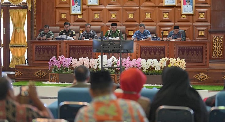 Rapat dipimpin langsung Wakil Bupati Siak Syamsurizal dan diikuti unsur Forkopimda, para camat serta organisasi perangkat daerah (OPD) terkait di Ruang Rapat Raja Indra Pahlawan, Kantor Bupati Siak, Kamis (12/3/2026).