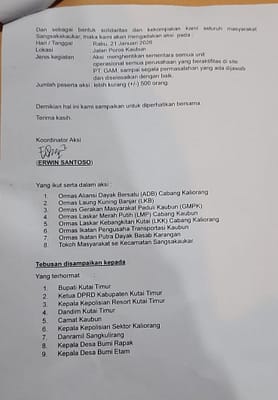 “Aksi ini adalah bentuk kepedulian masyarakat agar investasi yang masuk ke Kutai Timur, khususnya di Kecamatan Kaubun, tidak hanya menguntungkan perusahaan, tetapi juga meningkatkan kesejahteraan masyarakat lokal,” tegasnya.