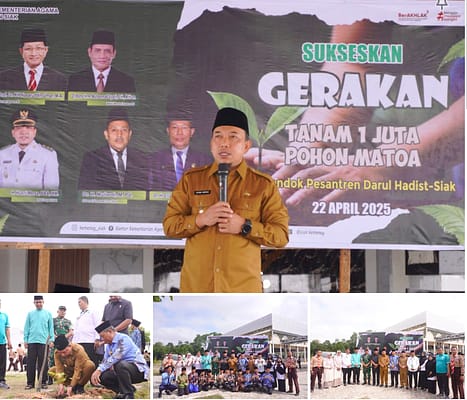 Siak | Riauindependen.co.id | Dalam rangka memperingati Hari Bumi Sedunia, Pemerintah Kabupaten Siak bersama Kementerian Agama (Kemenag) Siak menggelar gerakan penanaman satu juta pohon matoa secara serentak di seluruh wilayah Kabupaten Siak, Selasa (22/4/2025).